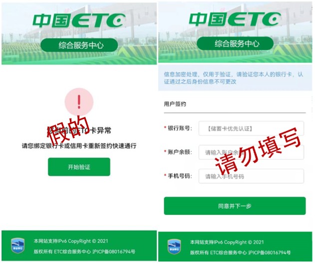 <滑动查看etc诈骗短信示例>