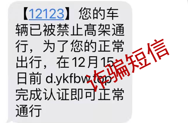 2. 警惕“ETC失去使用资格”“ETC被停用”“ETC认证失效”等类似ETC使用受影响的短信。收到该类短信时,不要第一时间按短信要求进行操作,先给自己提个醒,向官方核实信息真伪。