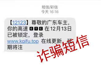 近日,钟先生收到手机短信:“【广东ETC】经查询,您的ETC已经失去使用资格,如需正常使用,请于今天内到一个网站链接更改。”